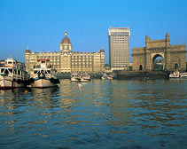 圖為孟買著名的景點印度門(右),距今日(8月25日)連環爆炸事件中其中一枚炸彈的爆炸地點不遠.(章田)