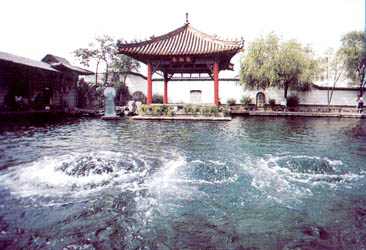 趵突泉又名檻泉,為濼水之源,至今已有二千七百年的歷史。趵突泉,三窟并發(fā),聲如隱雷,“泉源上奮,水涌若輪”。泉水一年四季恒定在攝氏18度左右,嚴(yán)冬,水面上水氣裊裊,像一層薄薄的煙霧,一邊是泉池幽深波光粼粼,一邊是樓閣彩繪,雕梁畫棟,構(gòu)成了一幅奇妙的人間仙境。歷代著名文學(xué)家、哲學(xué)家、詩人諸如曾鞏、蘇軾、張養(yǎng)浩、王守仁、蒲松齡等都有吟泉佳作和美文。