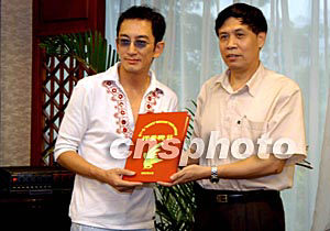 九月十三日,香港演藝界影視紅星吳啟華先生接受由廣州電視臺副臺長頒發(fā)的第十一屆“美在花城”準決賽評委聘書。作者:劉衛(wèi)勇