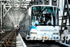 鴨綠江“中朝友誼橋”公路橋中方一側修復工程九月中旬竣工并恢復通車。該橋是中朝邊境主要陸路通道,修整后的公路橋面承重能力將由原來的十噸提升至二十噸。圖為滿載中國游客的大客車通過丹東鴨綠江大橋的情形。中新社記者:王麗南