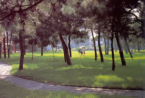 北戴河海濱背依翠黛的青山。壁立于海邊的東西聯峰山,海拔400米,蒼松翠柏,郁郁蔥蔥,清澗流水,幽徑曲折。這里山巒起伏,群山相互連貫,所以稱聯峰山。又因這座山形似蓮蓬,又稱蓮蓬山。沿山澗幽徑,攀上聯峰山,站在頂峰“望海亭”上,觀覽滄海,但見煙波浩渺,白浪層層,氣象萬千。