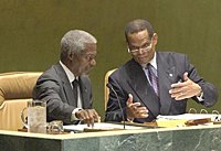中新網(wǎng)9月17日電 第58屆聯(lián)合國(guó)大會(huì)16日下午在紐約聯(lián)合國(guó)總部開幕,聯(lián)合國(guó)秘書長(zhǎng)安南以及來自191個(gè)聯(lián)合國(guó)成員國(guó)的代表出席了開幕式。在本次大會(huì)中,以中國(guó)外交部長(zhǎng)李肇星為團(tuán)長(zhǎng)的中國(guó)代表團(tuán)將參加一般性辯論。