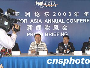 中遠(yuǎn)集團(tuán)投資建設(shè)的博鰲亞洲論壇永久會(huì)址——博鰲亞洲論壇國際會(huì)議中心,將于二十二日揭幕。該中心位于博鰲東嶼島,建筑面積為三萬七千平方米,共有大小十六個(gè)設(shè)施先進(jìn)的會(huì)議廳,主會(huì)場可以容納二千五百人。這是即將在明天召開“今日博鰲亞洲論壇:回顧與展望圓桌會(huì)議”會(huì)場。中新社記者關(guān)向東攝