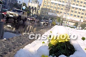 中新社烏魯木齊九月二十八日電(記者程勇 冉慶慈)昨夜一場大風,讓烏魯木齊的氣溫降至零下一攝氏度,早上起床發現窗外已是白雪皚皚,整個烏魯木齊處于一片銀裝素裹之中。大雪使今日烏魯木齊市的道路交通受到一定的影響,個別街道汽車排起長隊等待通行。