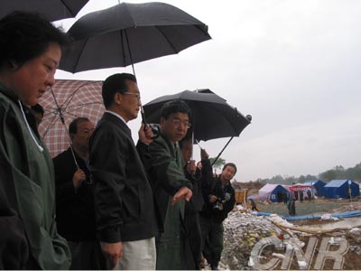離開臨時小學,溫總理一行又看望了許多住在帳篷里的農民群眾。下午4點50分,溫總理一行又冒雨登上飛機,飛往安徽災區。(來源:中廣網 作者:記者崔正來、雷愷)