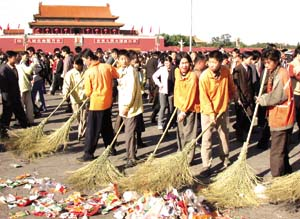 中新網(wǎng)10月4日電 據(jù)《京華時報》報道,由于游人“文明就差那么一點”,北京天安門廣場每天上10噸的垃圾讓環(huán)衛(wèi)部門有些不堪重負。