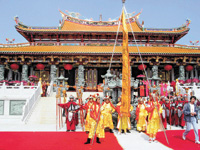 澳門特區行政長官何厚鏵主持天后宮的落成儀式。