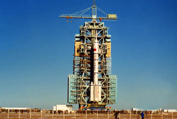記者到達發射中心的第二天,即10月11日,正巧趕上了“神舟五號”載人飛船和運載飛船的長征—2F火箭合體后的轉場,這是載人飛船發射前箭船組合體的最后一次亮相。發射中心里能來這里的人都來了,這是非常難得的機會。載人航天工程的管理是非常嚴的,沒有衛星發射中心發的證件,任何人都進不了“東方航天城”的門。即使在航天城里,要進入航天工作場所也必須持特別證件。臨近發射了,中心管得更嚴。據透露,從某天開始,發射中心將實行戒嚴,直到發射成功為止。