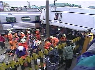 圖文:臺北縣鶯歌火車沖撞意外造成4死27人傷