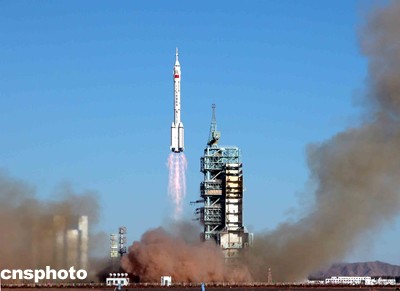 北京時(shí)間十五日上午九時(shí)整,“神舟”五號(hào)載人飛船由“神箭”——“長(zhǎng)征二號(hào)F”運(yùn)載火箭從此間載人航天發(fā)射場(chǎng)發(fā)射升空,“神箭”升空十多分鐘后,中國(guó)載人航天工程指揮部總指揮宣布,“神舟”五號(hào)載人飛船已成功進(jìn)入預(yù)定軌道,發(fā)射取得成功。