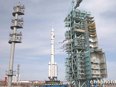 巍然聳立的發射塔架正翹首以待 “神舟”“神箭”