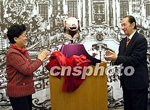 十月十六日,流失海外的圓明園國寶“豬首”銅像回到中國,與牛首、猴首、虎首三件銅像在失散143年之后團聚。國寶“豬首”銅像由何鴻燊博士捐款600多萬元自海外搶救歸來,由保利藝術博物館永久收藏,并將于十八日在圓明園免費公開展出。中新社記者:張宇
