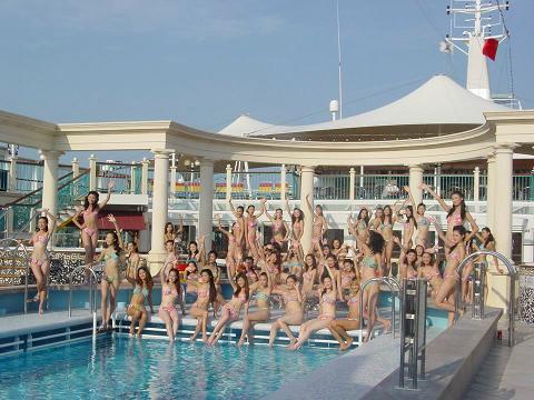 當(dāng)佳麗們乘坐的麗星郵輪獅子星號(hào)從香港行駛到海口時(shí),身著三點(diǎn)式泳裝的50名佳麗宛如出水芙蓉,驚艷“獻(xiàn)身”在郵輪上的露天游泳池旁。面對(duì)攝像鏡頭和船上中外游客發(fā)出的驚嘆聲,佳麗們自信的展現(xiàn)各種姿態(tài)。
