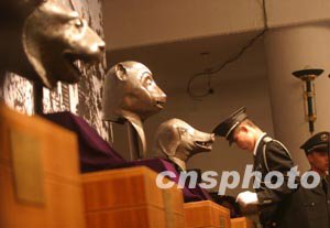 十月十八日,圓明園的銅豬首、銅牛首、銅猴首和銅虎首四件國寶在保安人員護衛下回到了闊別143年的故里,在圓明園與廣大觀眾見面。曾被英法聯軍掠走的這四件國寶是中國保利集團及愛國人士用重金從境外購回的。中新社記者:史利