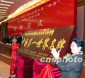 中國工業(yè)經(jīng)濟(jì)聯(lián)合會等十個工業(yè)行業(yè)協(xié)會和聯(lián)合會十八日在北京人民大會堂舉行儀式,為“神舟”、“神箭”的中國第一世界名牌授牌。