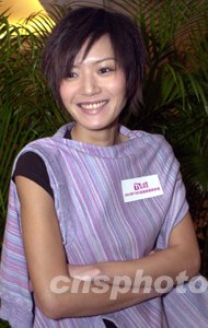 歌星關(guān)心妍10月21日在香港出席《2003年TVB8金曲榜頒獎典禮》記者會。中新社記者:鄧慶樂