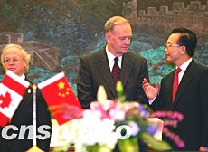 溫家寶晤克雷蒂安 就發展中加兩國關系提三建議