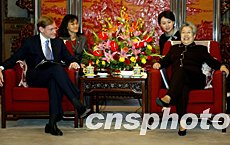 中國國務院副總理吳儀二十二日在北京中南海會見美國貿易代表佐立克。中新社記者:毛建軍
