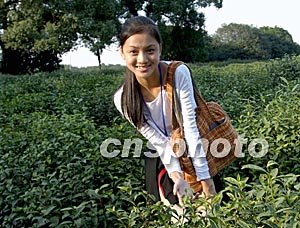 新絲路世界模特大賽的中國佳麗,在十月底金秋時節(jié)的杭州郊外龍井學(xué)習(xí)採茶。中新社記者:賈國榮