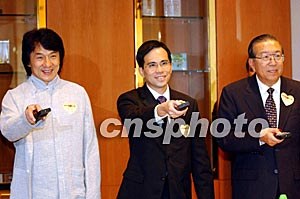 香港長江集團在香港公益金成立35周年之際,舉辦“長和愛心為公益”籌款活動,圖為10月30日,長江實業(yè)董事總經理兼副主席李澤巨、公益金籌募委員會聯(lián)席主席李業(yè)廣和影星成龍出席記者會。作者:洪少葵