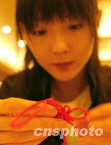參加中國新絲路世界模特大賽的中外佳麗,十月三十一日在杭州學做中國結。中新社記者:賈國榮