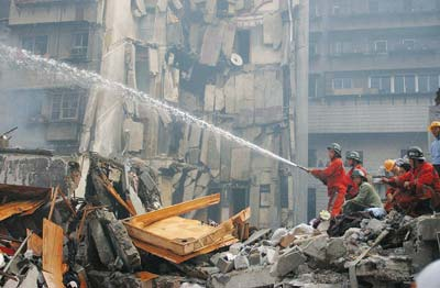 昨天凌晨4點(diǎn)多,湖南衡陽市珠暉區(qū)宣亭村一棟八層四合院商住樓發(fā)生重大火災(zāi)。當(dāng)?shù)叵拦俦杆仝s到火災(zāi)現(xiàn)場,經(jīng)全力撲救,樓內(nèi)96戶共412名居民全都安全撤離,8點(diǎn)30分左右,大火被基本撲滅。但就在此時(shí),著火大樓的西面、北面和南面的部分樓房突然發(fā)生倒塌,將多名正在救火的消防官兵壓在下面,目前已確定有七名消防員以身殉職,還有十三名官兵被埋廢墟,正在緊急搜救中。