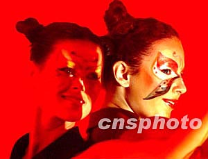 參加中國杭州新絲路世界模特大賽的外國小姐,在金秋時節決賽前登臺展現人面彩繪。中新社記者:賈國榮