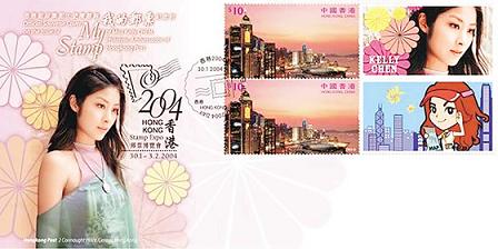 Kelly親自創作了兩款郵票,第一款選自其唱片專輯《愛》中的造型照;另一款則是配合這次大會主題旅游,特別邀請漫畫家義務繪畫卡通版Kelly游覽香港維港的構圖。