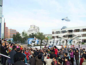 “神舟”五號(hào)飛船載人航天飛行取得圓滿成功,激起了中國(guó)廣大青少年兒童對(duì)航天科學(xué)的濃厚興趣。在活動(dòng)現(xiàn)場(chǎng),小朋友們對(duì)“神舟”五號(hào)載人飛船發(fā)射、運(yùn)行、返回、著陸各個(gè)階段非常熟悉,他們爭(zhēng)先恐后地回答指導(dǎo)老師的提問(wèn),人人動(dòng)手制作“降落傘”,驗(yàn)證空氣阻力的原理和奧秘。
