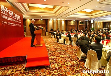 美國(guó)前總統(tǒng)克林頓十一月十一日在北京國(guó)際俱樂部飯店出席演講會(huì),向中外人士宣講中美攜手共進(jìn),友誼常青。
