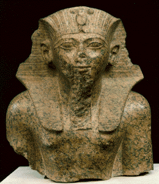 在這批珍品中最引人矚目的是具有千年以上歷史的古埃及新王國時期的圖特穆斯四世的花崗石半身像。這件原本保存于盧浮宮內(nèi)的古埃及文物,最大特色在于他頭頂上的那個蛇形頭冠。