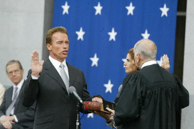 阿諾·施瓦辛格于美國當(dāng)?shù)貢r(shí)間11月17日宣誓就任加利福尼亞州第38任州長(zhǎng)。施瓦辛格宣誓就職儀式吸引了大約740名記者參加,規(guī)?氨让绹偨y(tǒng)就職儀式,世界各地?cái)?shù)百萬觀眾觀看了儀式的現(xiàn)場(chǎng)直播。