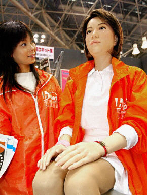 由日本的Kokoro推出的具有人形特征的"Actroid"機器人19日在日本東京舉行的國際機器人大展上揭開面紗。"Actroid"具備有似人表情和人造肌肉。明年Kokoro計劃將1.58米高,30公斤重的"Actroid"投放市場。