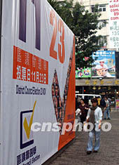 香港特別行政區區議會選舉將于十一月二十三日進行投票,在香港街頭區議會選舉投票日標語引人注目。中新社記者:錢興強