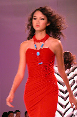 中國國際時裝周上東北虎皮草公司宣布中國推出第一個高級晚裝品牌NE·TIGER,圖為高級皮草晚裝展示玫瑰紅個性色調(diào)皮草。