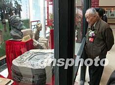 巴金百歲大壽在即, 巴金文學院新館二十一日在巴金故鄉四川成都正式落成。圖為巴金之弟李濟生在巴金陳列室參觀。作者:楊杰
