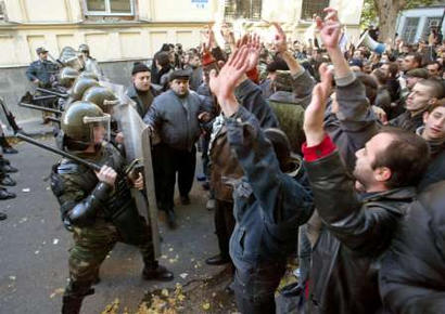 圖:格魯吉亞反對派沖破警察防線沖進議會大樓
