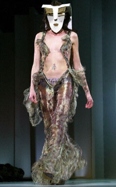 圖:中國國際時裝周上提醒預防SARS的時裝