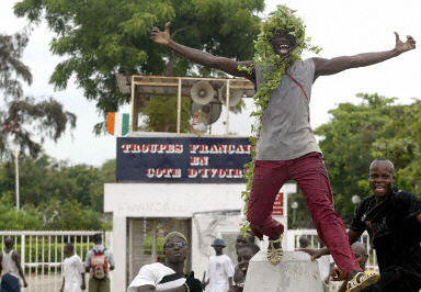 科特迪瓦青年與法國士兵對峙