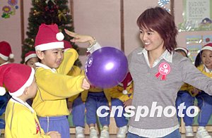 歌星梁詠琪12月8日在香港出席仁濟(jì)醫(yī)院郭子梁幼兒中心探訪活動(dòng),“仁濟(jì)慈善大使”梁詠琪與該中心小朋友一起唱游,并帶備圣誕禮物派發(fā)。作者:鄧慶樂