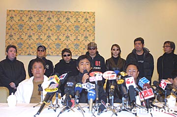 十二月十日,柯受良家人、好友在滬舉行新聞發(fā)布會(huì),澄清“小黑”柯受良真實(shí)死因,出席發(fā)布會(huì)的有柯受良弟弟(左一)、吳宗憲(前排中)、曾志偉(后排左二)等。中新社記者:湯彥俊