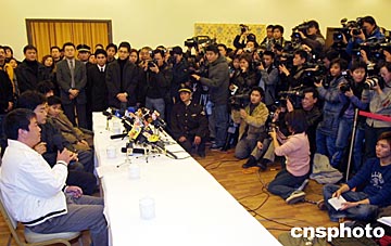 柯受良兒子柯友倫(右一)、柯有謙出席了本次新聞發(fā)布會(huì)。中新社記者:湯彥俊