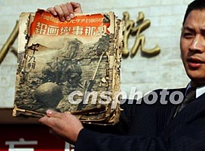 十二月十三日,溫州晚報社將珍藏的幾本揭露當年侵華日軍罪行的珍貴畫冊捐贈給中國抗日戰爭紀念館,以紀念南京大屠殺遇難的30多萬同胞。中新社記者:武仲林