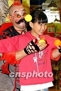 來自俄羅斯的莫斯科馬戲團(tuán)十二月十六日在香港舉行演出發(fā)布會,該團(tuán)將在香港連續(xù)進(jìn)行為期數(shù)月的演出活動(dòng),全新的馬戲節(jié)目為香港觀眾帶來歡樂、刺激的新感受。圖為馬戲團(tuán)小丑指導(dǎo)小朋友練雜耍。中新社記者:錢興強(qiáng)