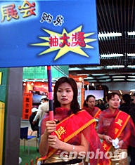 十二月十九日,在北京國貿中心舉行的冬季房展會上,售房小姐手持“購房抽大獎”的牌子在展廳中穿梭。房地產商希望通過這種方式推動樓盤銷售。作者:張雷