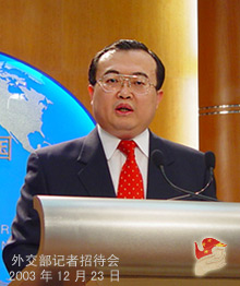 問:最近美方派特使來華并與外交部亞洲司傅瑩司長會見,請問會談是否取得進展?一年來中方已做了許多工作來推動第二輪六方會談,你認為2004年是否會有更大進展,一月份是否有希望舉行第二輪六方會談?