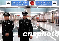 圖:北京警方加強(qiáng)地鐵八通線通車前的安全檢查