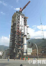 "長征二號丙"改進型運載火箭一、二級吊裝上發射塔架