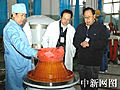 圖:鄭全寶、李占奎查看火箭上面級發動機