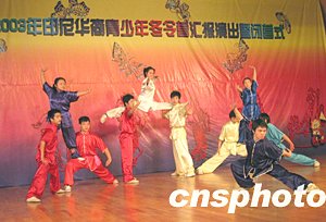 中新社長(zhǎng)沙十二月二十九日電(殷敏鴻 鄧霞)二十九日上午,在湖南師大音樂學(xué)院演奏廳舉行了印尼華裔青少年中國(guó)民族舞蹈及中華武術(shù)冬令營(yíng)匯報(bào)演出暨閉營(yíng)式,伴隨著悠揚(yáng)的音樂,小營(yíng)員們身著中國(guó)傳統(tǒng)民族服裝,像模像樣地向臺(tái)下的中國(guó)觀眾表演了八天來在中國(guó)學(xué)到的民族舞蹈和中國(guó)功夫,博得陣陣熱烈掌聲。